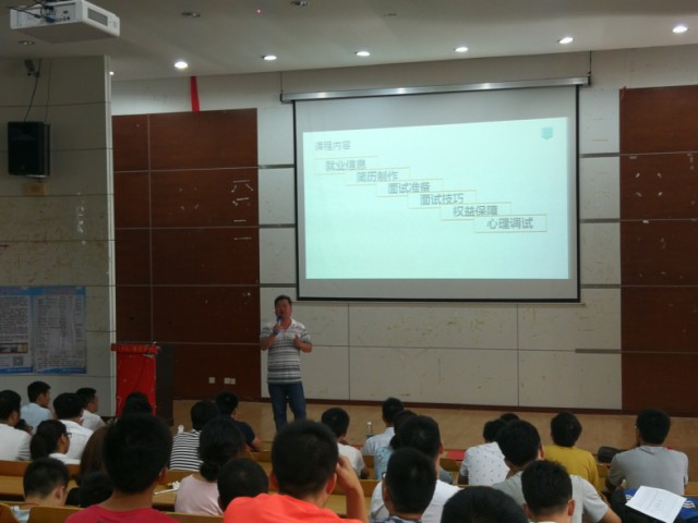 符文祥老师为同学们分析了毕业后的去向,参加招聘会、出国留学、应征入伍以及公务员考试、自主创业等。但他也告诫同学们,不管哪一条道路,你都需要一份好的履历,因为这是面试“敲门砖”,同时衣装得体,面试提前做好知识和心理的准备也是你们必须要做好的,因为这是面试官的对你的第一印象分,并对面试过程中常见的问题和面试技巧跟同学们进行了详细的分析和介绍。