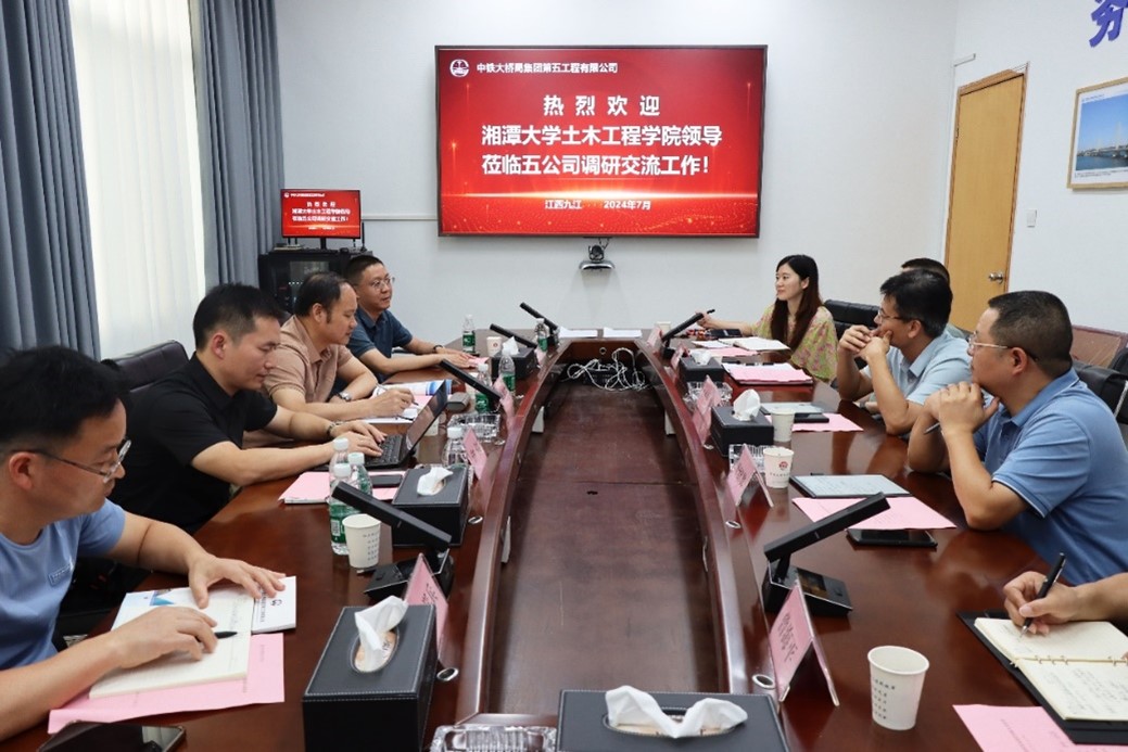 7月31日下午在中铁大桥局集团第五工程有限公司九江总部,公司党委书记、执行董事侍刚,总工程师叶绍其,副总经理曾海平,总经理助理王延坤,人力资源部副部长、设计分公司党支部书记罗婧等公司领导参加了交流活动。侍刚对德赢官网的到访表示热烈欢迎,并简要介绍了公司改革发展情况及下一步校企合作展望。陈幸华对中铁大桥局五公司给予德赢官网的关心与支持表达了诚挚的感谢,并介绍了德赢官网Vwin的整体发展、办学思路及取得的成果,邀请公司下半年赴学校开展秋季校园招聘。交流中探讨了适应海外市场业务的人才培养、企业骨干技术人员继续教育和学历提升以及校企科研合作等内容,续签了本科生实习基地共建合作协议,并举行了实习基地授牌活动。