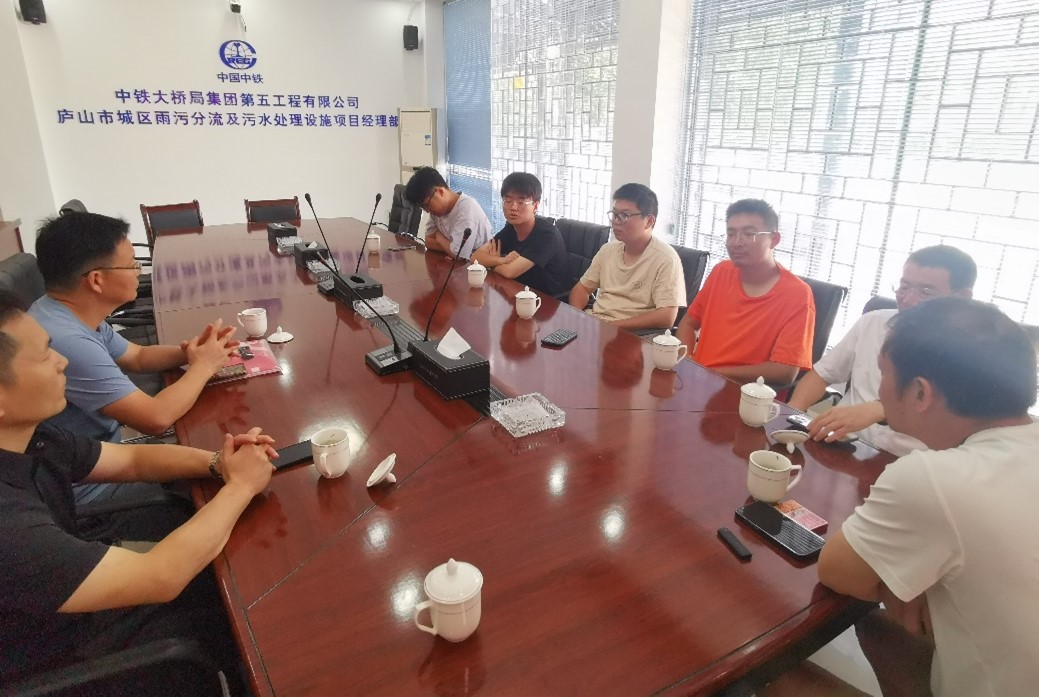今年暑假中铁大桥局集团第五工程有限公司共接收德赢官网2021级土木工程专业19名学生的生产实习。8月1日上午陈幸华书记一行到离公司总部最近的庐山市城区雨污分流及污水处理设施建设项目经理部,看望了在该项目上实习的4名学生。