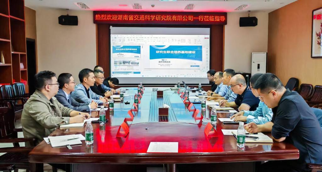 2025年10月16日下午,湖南省交通科学研究院有限公司(以下简称“湖南省交科院”)党委委员、副总经理周利金、技术质量部部长刘卓、勘测院总工郑祖恩、双碳院总工陈宇亮、勘测院副总工刘文劼、技术质量部主管黄浩等一行来访德赢官网Vwin开展座谈交流。学院院长许福、副院长陈宾、院党委委员、道路桥梁系主任王智超、硕士学位点负责人邓代强、学院专任教师陈琛、研究生办公室龙凤文、王宁参加了交流会。双方就构建校企协同育人长效机制、建设高效研究生联合培养基地、深化产学研合作、推动资源优势互补等议题进行了深入研讨。