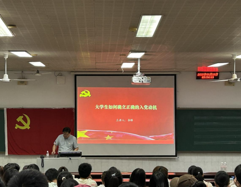 开班典礼结束后,外国语学院党委书记李峰老师围绕“新时期大学生如何端正入党动机”为入党积极分子授课。