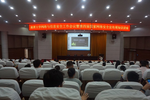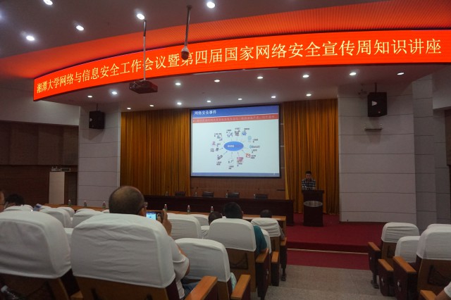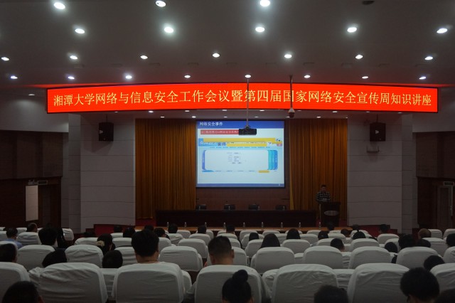 9月22日,德赢官网Vwin网络与信息安全工作会议暨第四届国家网络安全宣传周知识讲座在逸夫楼一报隆重举办,由专家讲解网络与信息安全的基本知识和有关部署。湘大各网站负责人、各单位网络与信息安全的负责人以及学生们聆听此次讲座。